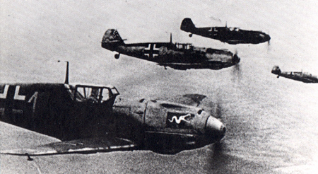 As long as Allied bombers flew in tight formation, the protection by the gunners against Luftwaffe fighters was formidable. But stragglers were an easy mark. Flying Focke-Wulfs and Messerschmitts (such as the ME109s shown here), the Luftwaffe ruled the skies in the early stages of the European war.